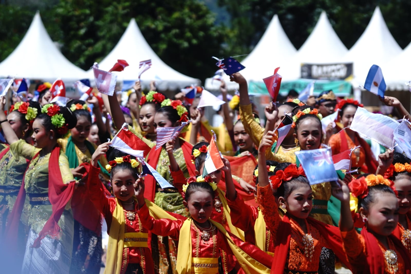 Penampilan Ronggeng Sadunya menjadi daya tarik tersendiri. Para penari menyambut para pilot yang akan menari-nari di langit Sumedang dengan paralayang warna-warni. (rls)